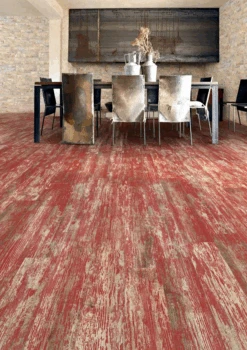 Carrelage Imitation Parquet Rouge Rectifié Vieilli Mat YUGO Volcan 14.4×89.3 – 1.29m²