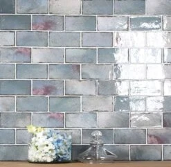 Parement Brillant Effet Brique Usé MANOVO SKYLINE BLUE 13X39,5 – 0,51m²
