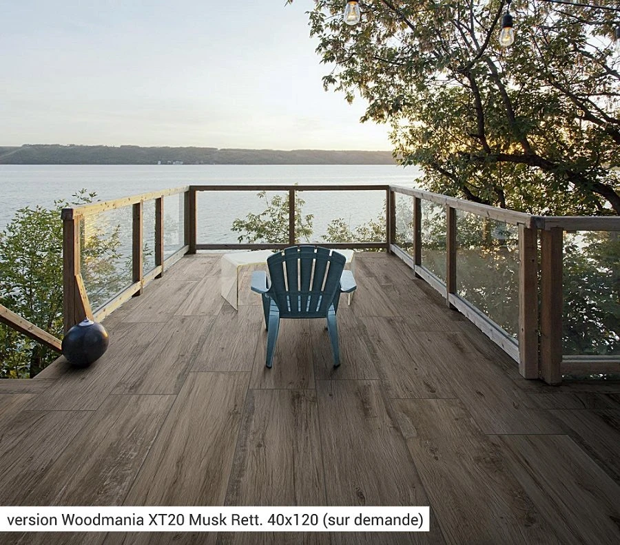 La série WOODMANIA existe en 5 teintes différentes et 2 finitions : intérieure et antidérapante moyenne pour prolonger le sol de l’intérieur vers l’extérieur.