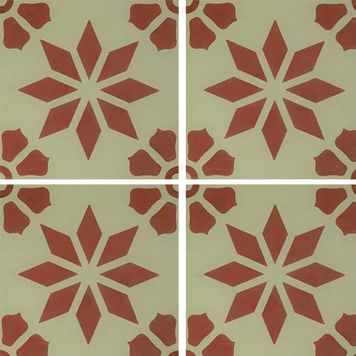 Carreau de ciment décor étoile fleur rouge 20×20 cm ref7190-4