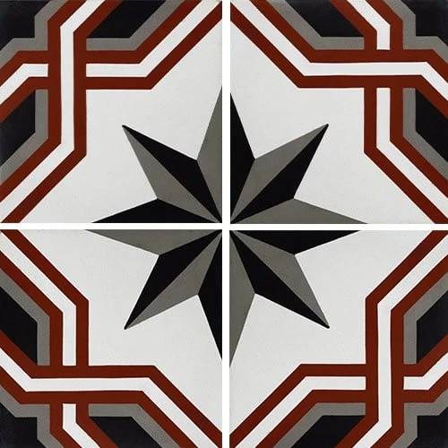 Carreau de ciment décor étoile noire liseret rouge 20×20 cm ref1210-1