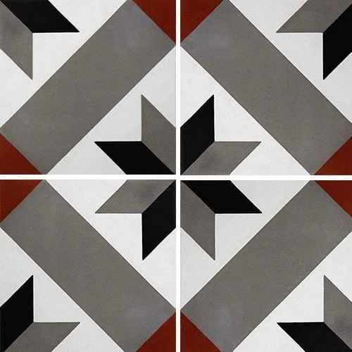 Carreau de ciment décor géométrique gris rouge 20×20 cm ref1150-4 – 0.48m²
