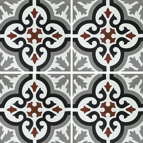 - Couleur: décor arabesque floral noir et rouge – Les carreaux de ciment peuvent présenter des variantes de couleur dues au phénomène naturel de pigmentation.