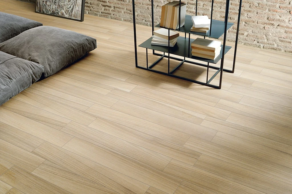 La série AFFLOUX s’inspire d’un bois exotique nommé « afromosia » utilisé pour la réalisation de parquets. Elle est dotée d’un aspect veineux équilibré et harmonieux totalement dépourvu de nœuds. Grâce à son apparence rayée et douce, elle est associée à la perfection avec d’autres matériaux comme la pierre ou le marbre. Adaptée à des espaces variés, cette série évoque le style nordique dans son acception la plus douce et la plus chaleureuse. Également disponible pour destination extérieure, elle convient parfaitement pour sol et mur.