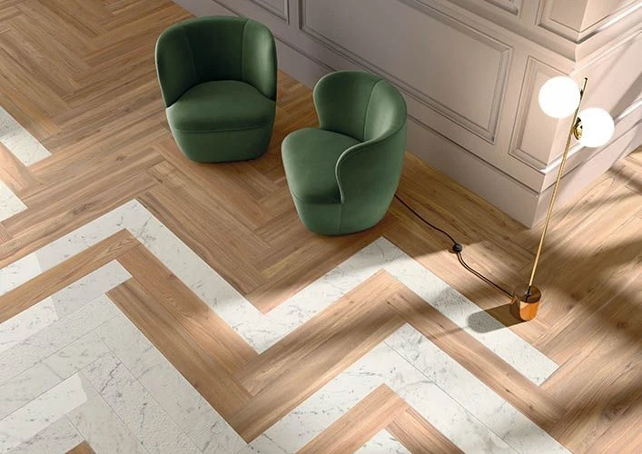 - Aspect: parquet ambré avec variations de nuances, mat