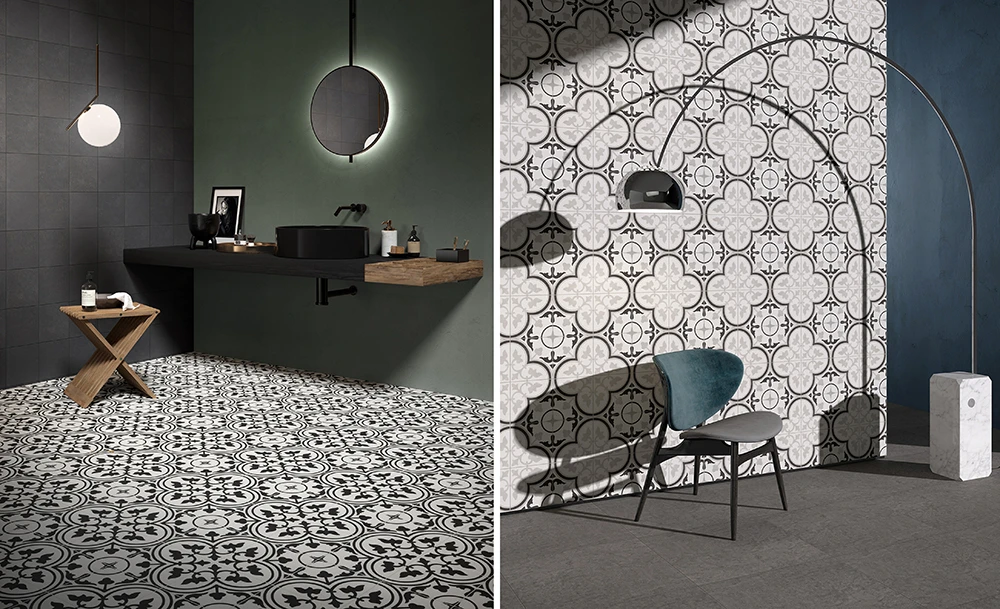 Nous réinterprétons les carreaux de ciment classiques dans des tons contemporains pour créer de nouvelles solutions stylistiques et chromatiques .