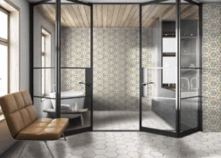 Ce modèle comporte des irrégularités, comme des petits trous dans les carreaux. Cette finition est une finition vieillie du carreau