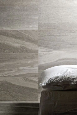 Cette collection s’inspire du projet des Termes de Vals de Peter Zumthor qui suit la logique du « less is more » et qui rend la pierre protagoniste dans son matiérisme. Elle interprète la texture graphique particulière de cette pierre et la rend utilisable pour ceux qui souhaitent s’entourer d’une beauté naturelle tout en recherchant aussi une matière céramique résistante et fonctionnelle, au graphisme d’impact et de caractère. Disponible dans des formats variés pour de multiples solutions de pose, elle est adaptée aussi bien à des espaces intérieurs qu’extérieurs.