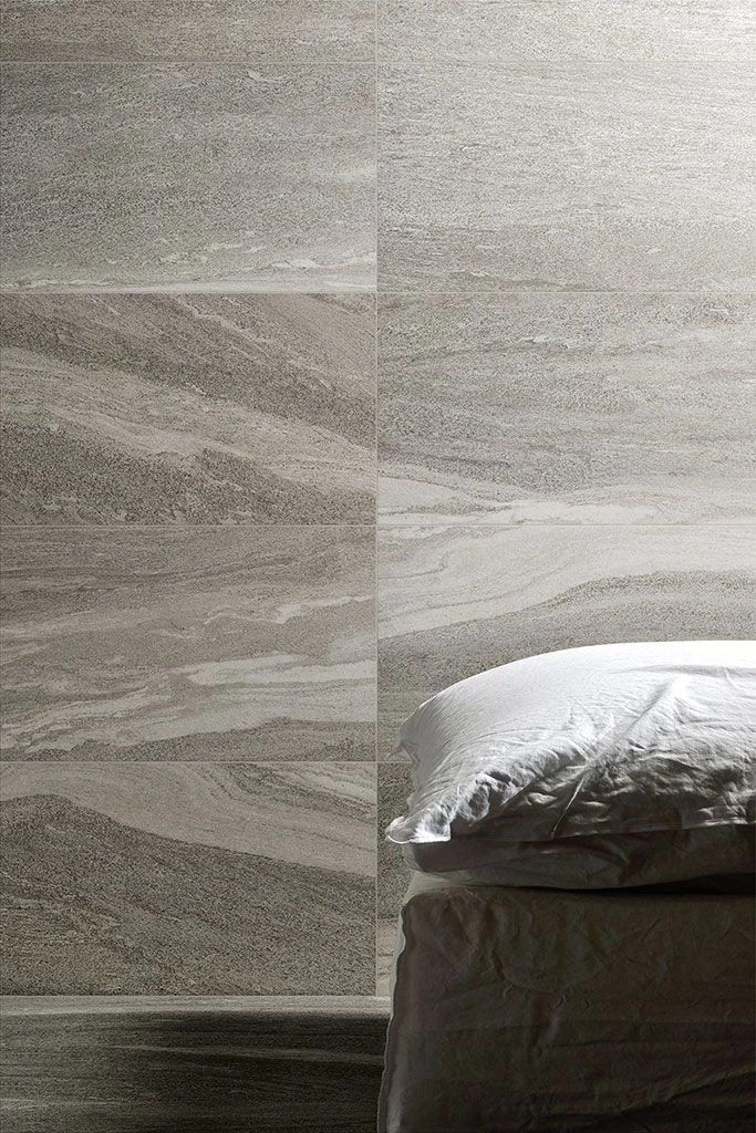 Cette collection s’inspire du projet des Termes de Vals de Peter Zumthor qui suit la logique du « less is more » et qui rend la pierre protagoniste dans son matiérisme. Elle interprète la texture graphique particulière de cette pierre et la rend utilisable pour ceux qui souhaitent s’entourer d’une beauté naturelle tout en recherchant aussi une matière céramique résistante et fonctionnelle, au graphisme d’impact et de caractère. Disponible dans des formats variés pour de multiples solutions de pose, elle est adaptée aussi bien à des espaces intérieurs qu’extérieurs.