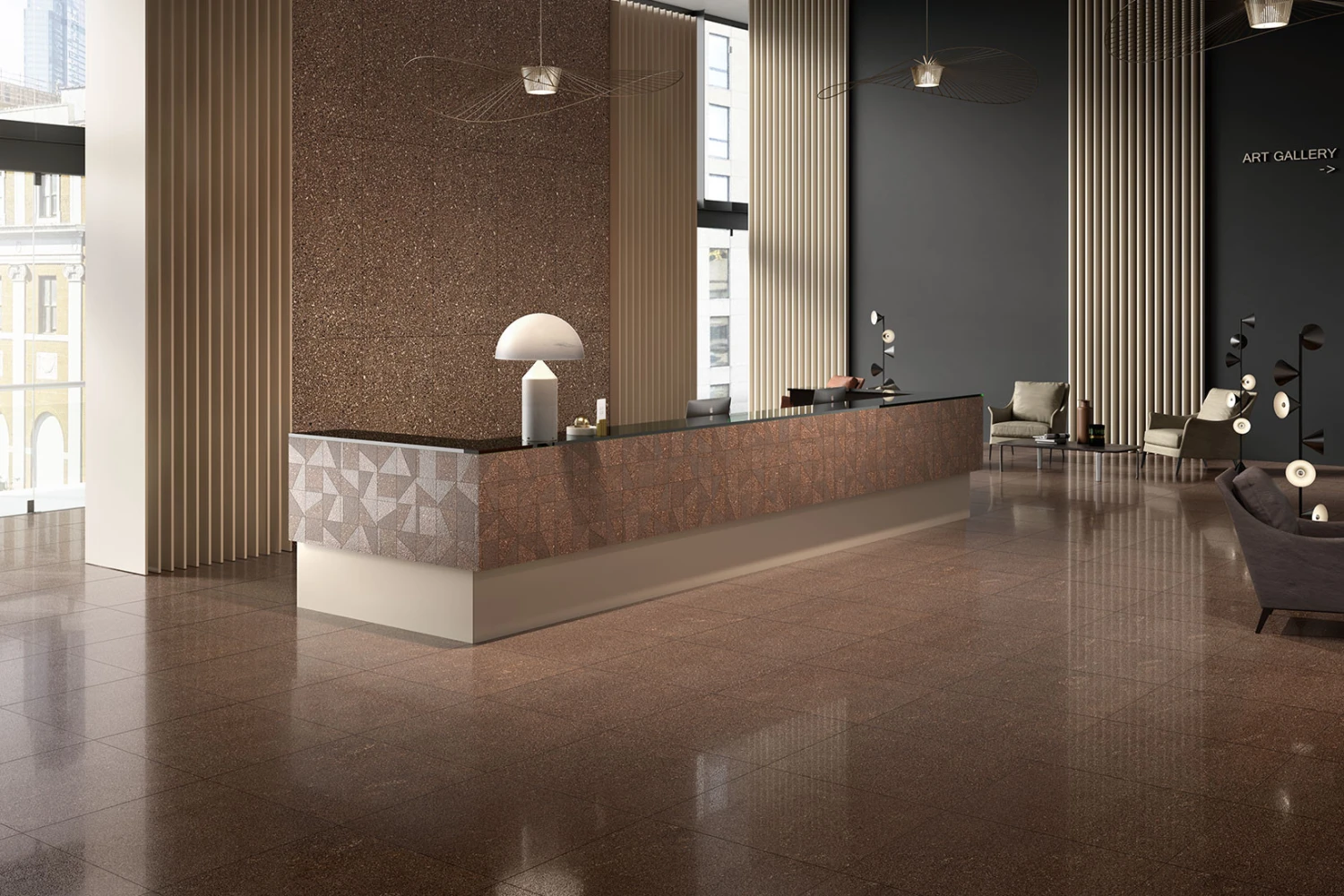PALMERSTON s’inspire d’un matériau magmatique qui se forme grâce au refroidissement d’une coulée de lave appelée le Porphyre. Son esthétique original interprète de nouveaux espaces à la saveur légèrement rétro dans lesquels des décorations vintage se mêlent à des pièces de design authentique. Idéale pour des applications dans des espaces résidentiels et commerciaux, aussi bien comme revêtement mural qu’au sol ainsi que pour des solutions en continuité à l’extérieur.