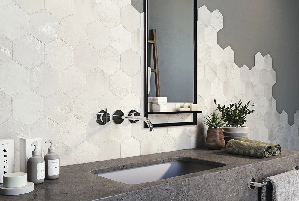 Carrelage hexagonal effet pierre CIERI NIEVE 18×20,5 – 1 m²