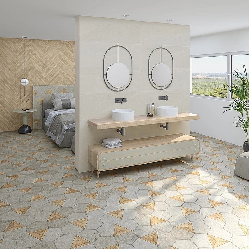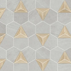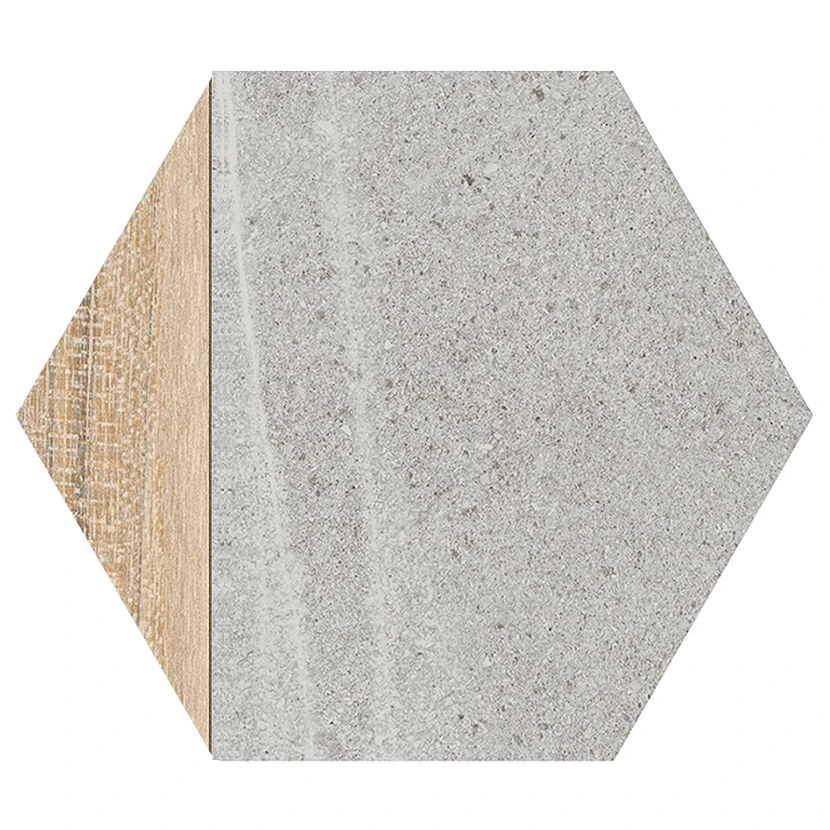 Carrelage hexagonal tomette effet pierre bois 23×26.6cm HEXAGONO LIGARD Gris- 0.504m²