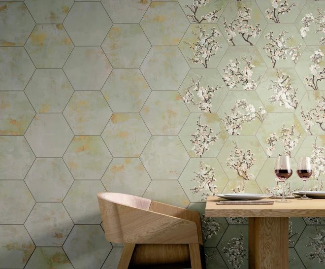 Carrelage hexagone décoré MORGESSE GREEN DECOR HEXAGON 25×30- 0,94 m²