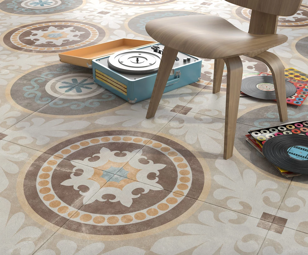 Carrelage imitation carreau de ciment ancien décor Grès Cérame 60×60 cm TEMPO NAOS – 1.44m²