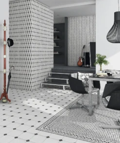 Carrelage imitation ciment décor noir et blanc 20×20 cm ANGLE BELEM – 4 Unités