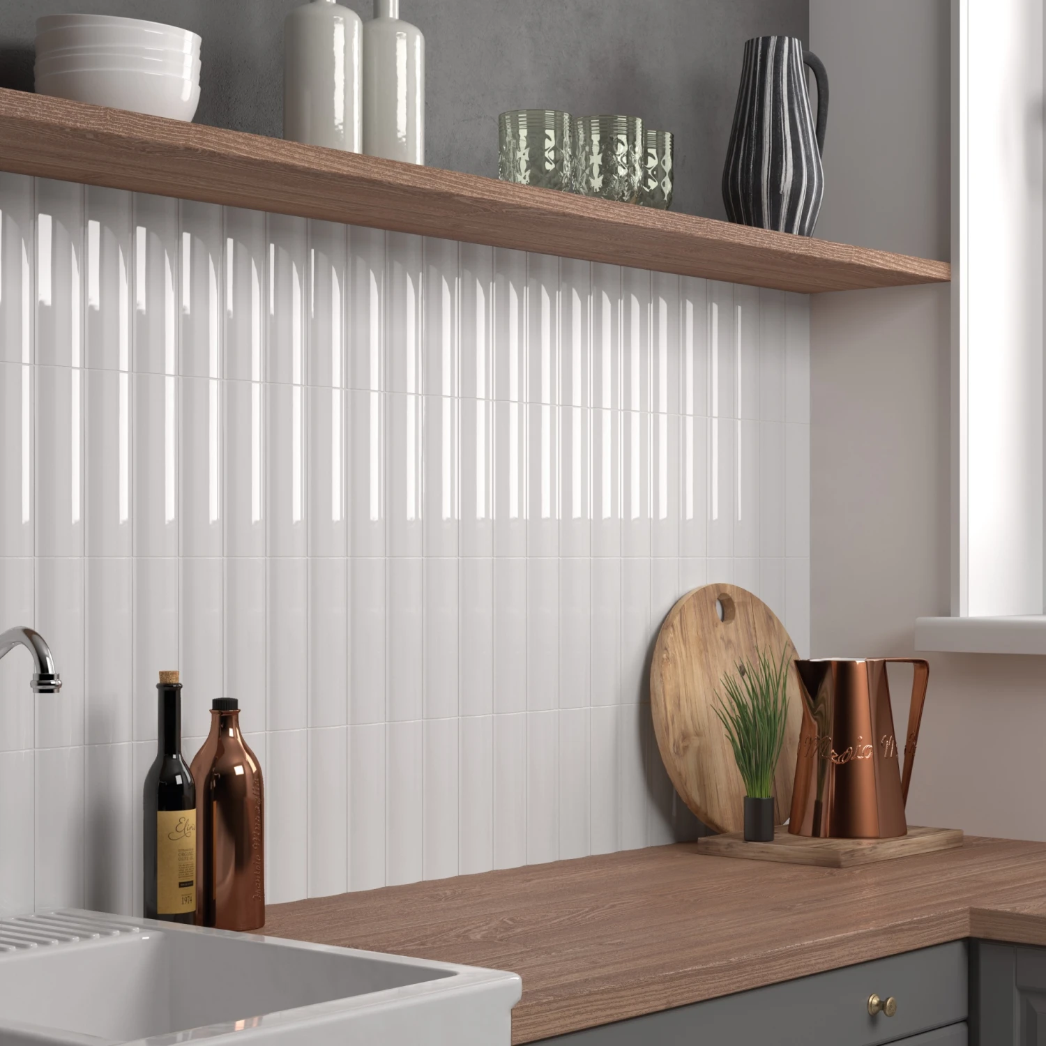 Carrelage mural uni et coloré à relief VORNE OUT GESSO WHITE – 6,5X20 – 0,5 m²