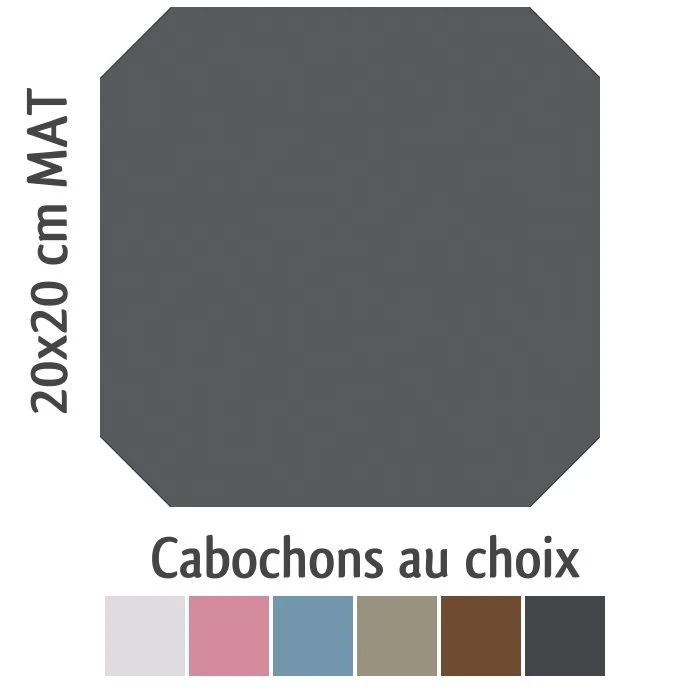 Carrelage octogonal 20×20 anthracite mat et cabochons CABARET ANTRACITA – 1m²