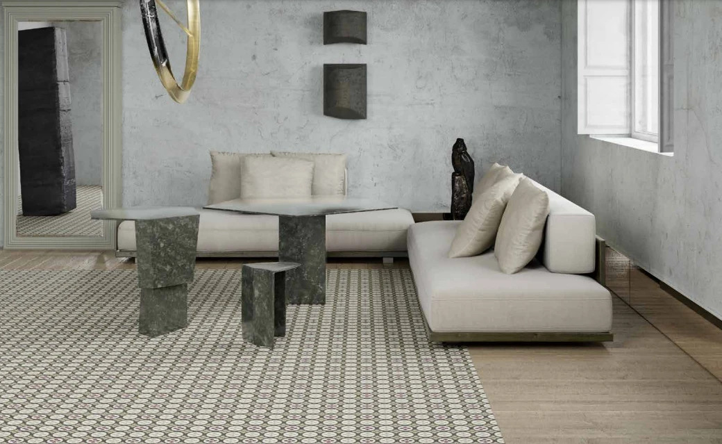 Carrelage quadrillage effet ciment rectifié – Vienna Albertina Natural 59.2×59.2 cm – R10 – 1,402m²