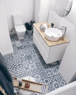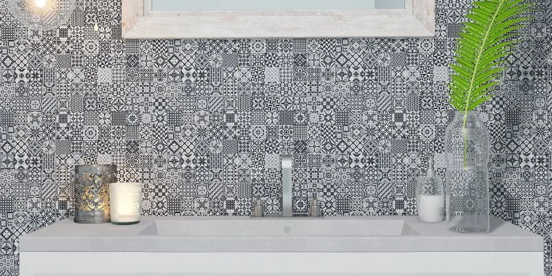 - Type: carreaux en céramique de 33.15×33.15 cm composés de 4 motifs / mélange aléatoire de motifs différents (effet une fois posé de 16×16 cm)