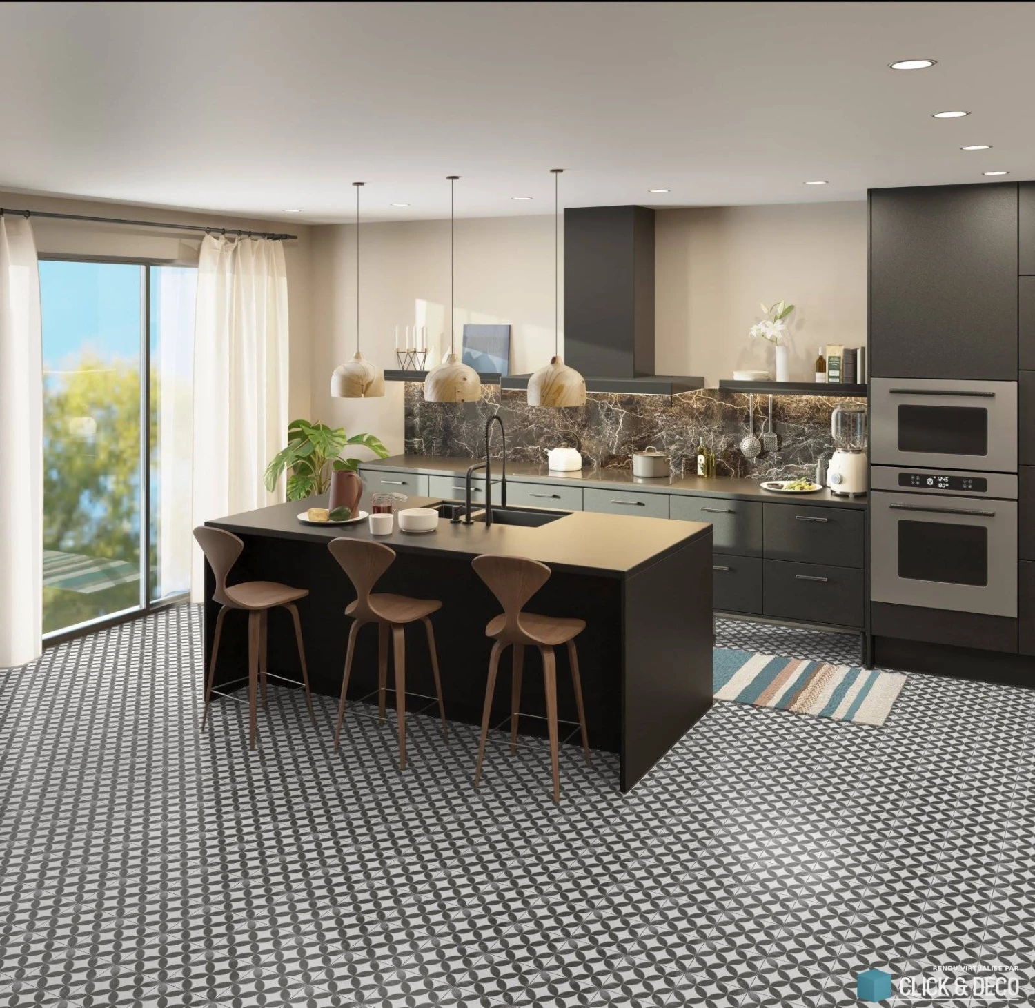 Carrelage style ancien Quatre-feuilles 20×20 cm KERALA Noir – 1m²