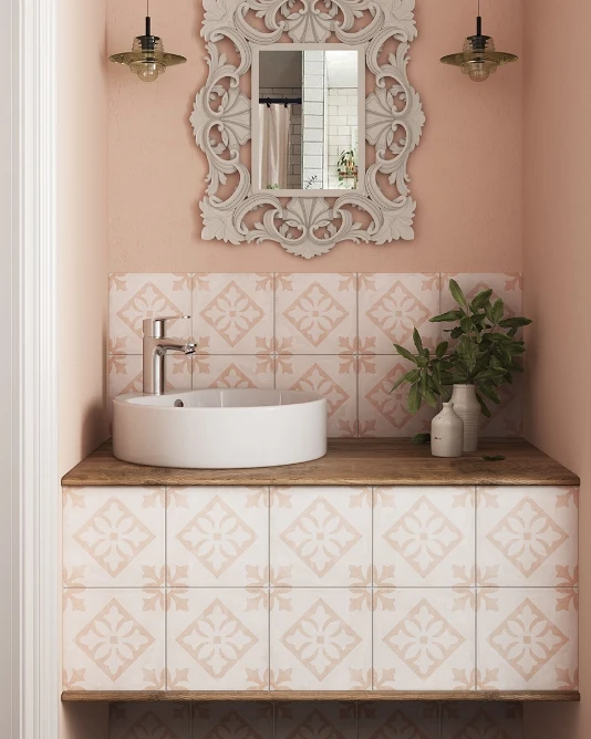 Carrelage style ciment décor rose 20×20 cm ART NOUVEAU PADUA PINK 24407 – 1m²