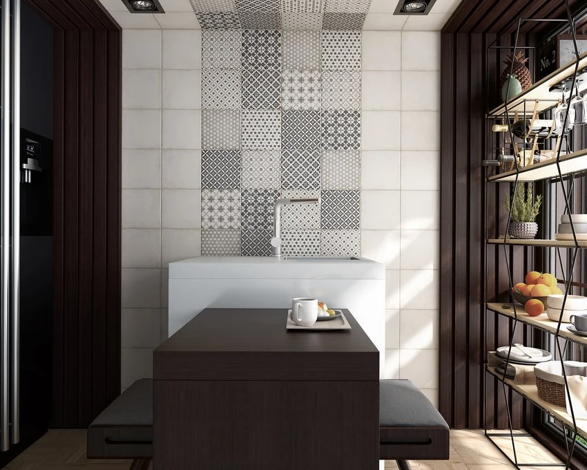 - Couleur: gris, blanc, noir (patchwork de carreaux décorés)