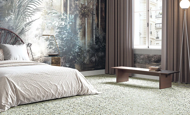 Inspirée par les veines de la lagune vénitienne, cette nouvelle ligne propose six mélanges différents de fragments et d’arrière-plans, formant une collection d’impact esthétique et de richesse visuelle. En plus de 3 nuances de gris avec des tons différents : Rialto, Canal Grande, Giudecca, il y a des blancs : Saint-Marc, Murano et Crème, La Fenice