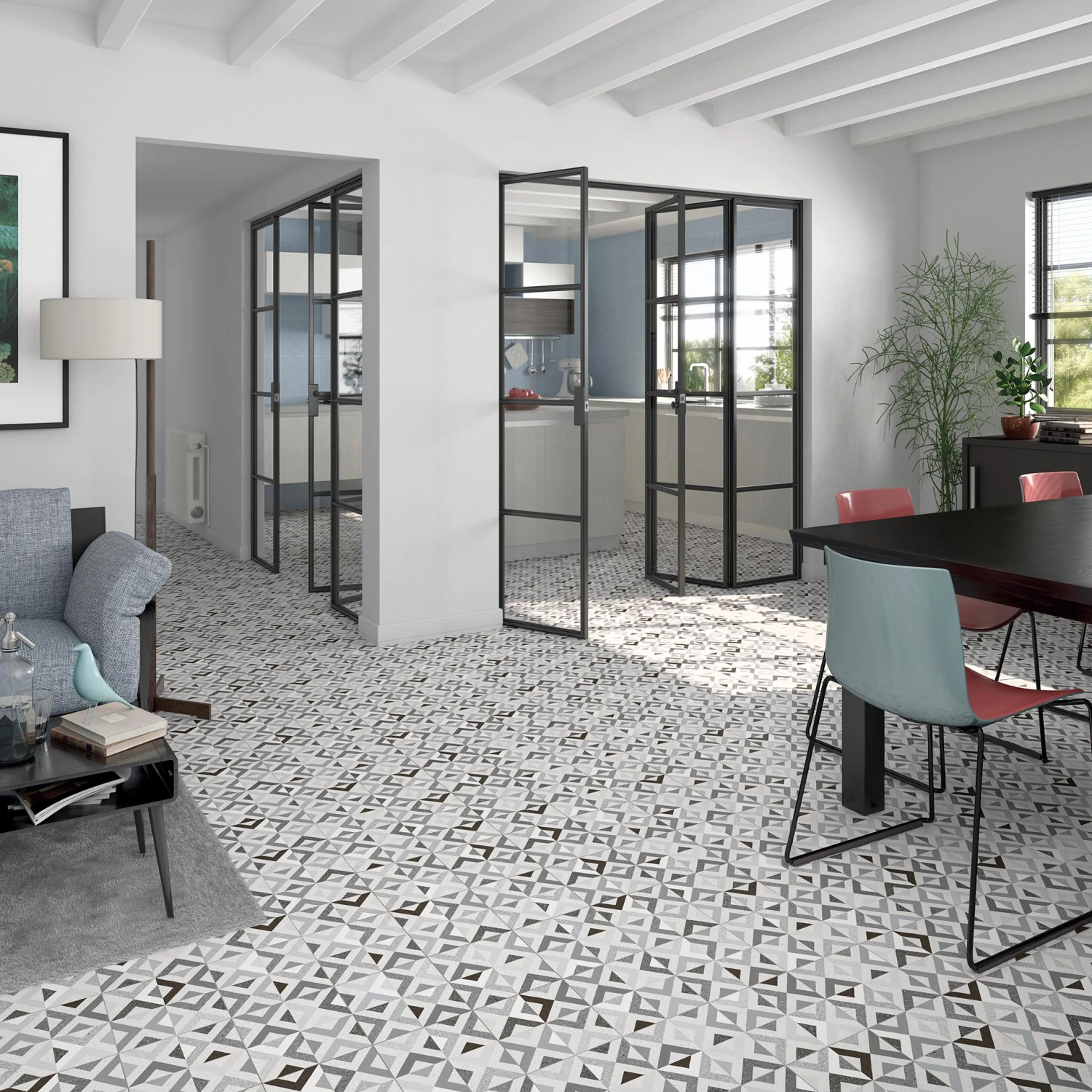 Carrelage style scandinave géométrique grisé BRENTA HUMO 20×20 – 1 m²