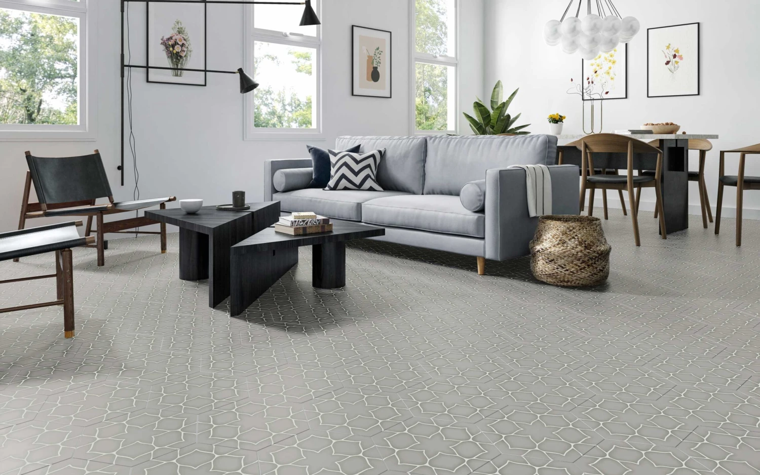 Carrelage tomette décorée KERNA GREY 28.5X33 – 1 m²