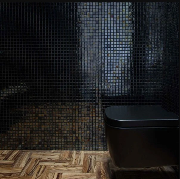 Carrelage uni 5×5 cm noir brillant LAVA sur trame – 1m²