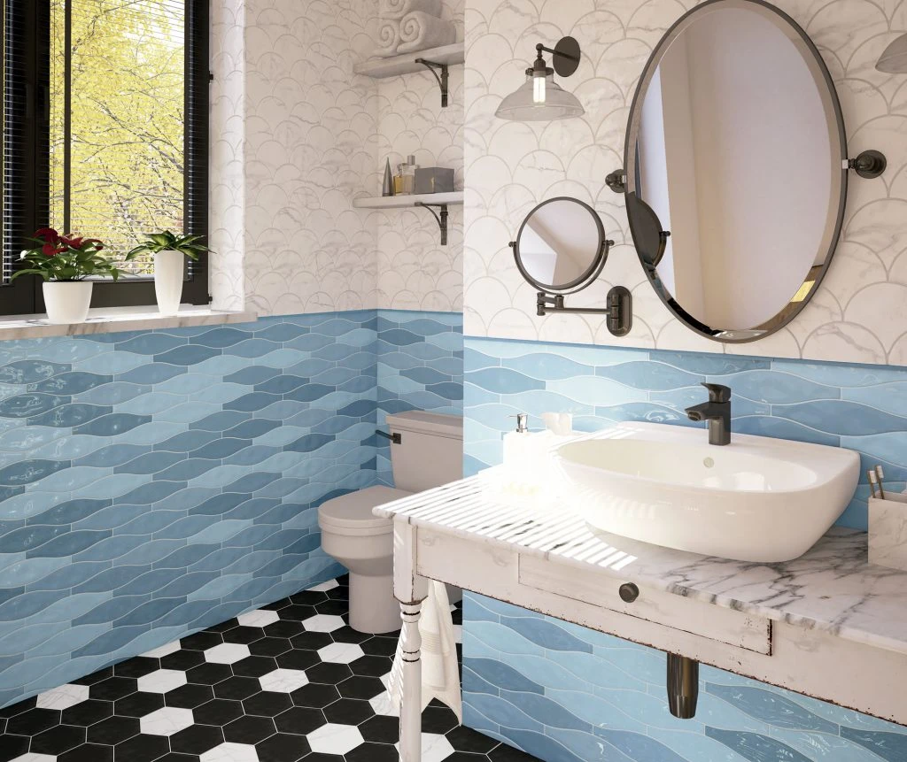 Faïence colorée effet vague SOLANGE BLUE brillant 7.5X30 – 0.66 m²