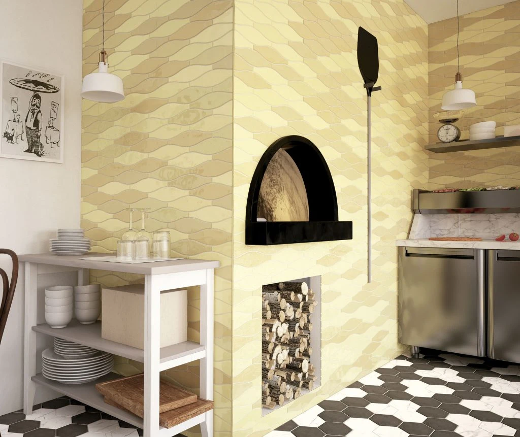 Faïence colorée effet vague SOLANGE Mustard brillant 7.5X30 – 0.66 m²