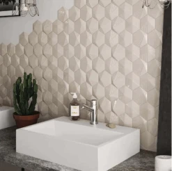 Faience hexagonale à relief MAFINGA OBERLAND CREAM 12,4X10,7 cm – 0,36 m²