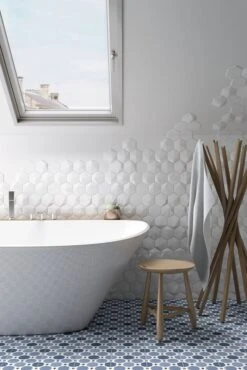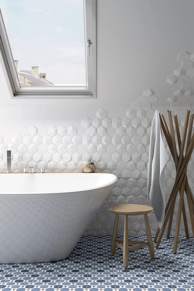 Faïence hexagonale décorée à relief MAFINGA UMBRELLA WHITE 12,4X10,7 cm – 0,36 m²