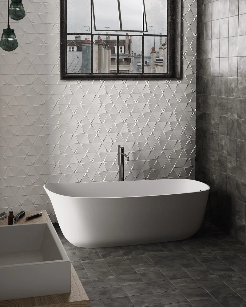 Faience triangle à relief MAFINGA TIROL WHITE MATT 10,8X12,4 cm – 0,13 m²