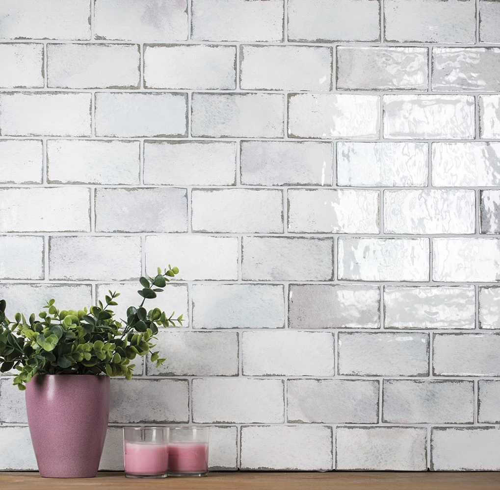 Parement brillant effet brique usé MANOVO SEDATE WHITE 13X39,5 – 0,51m²