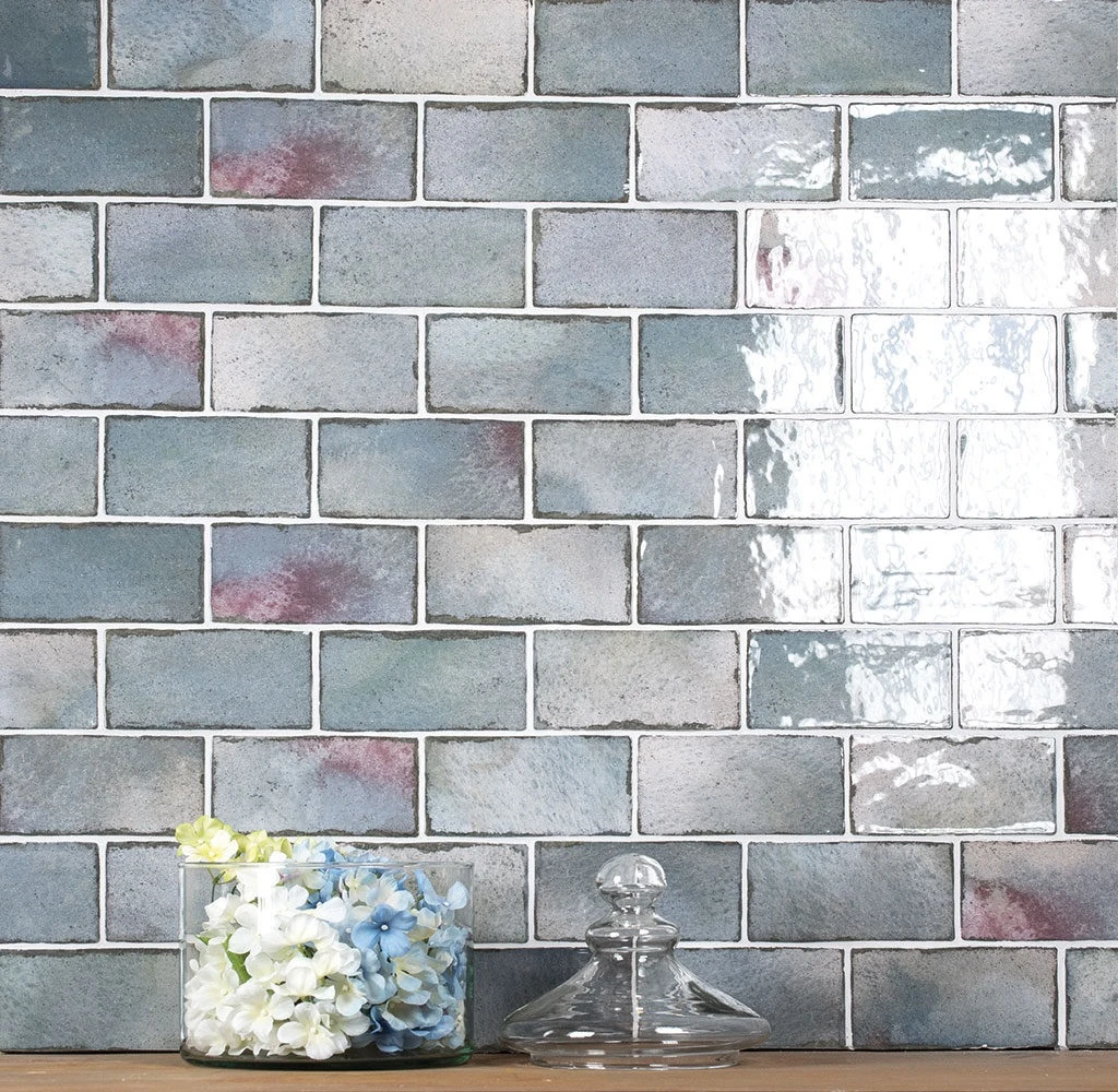 Parement brillant effet brique usé MANOVO SKYLINE BLUE 13X39,5 – 0,51m²