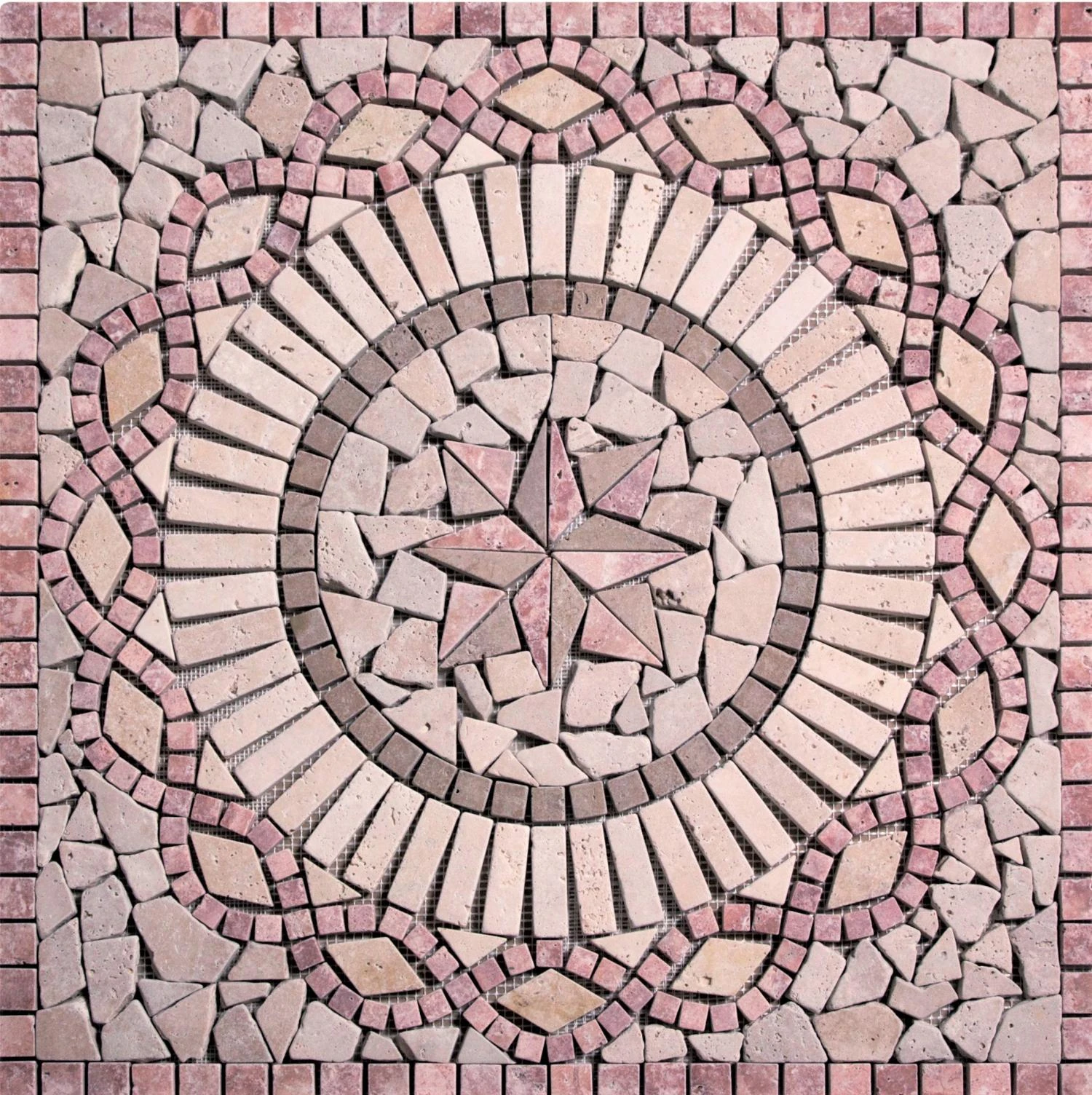 Rosace Travertin Rouge / Travertin Jaune 60×60 cm :
