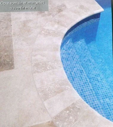 SET bain romain Margelles courbes rayon 150cm travertin beige veilli
