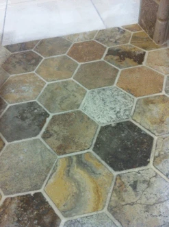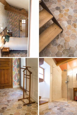 Sol travertin hexagonal mix beige noce gris – 1m²