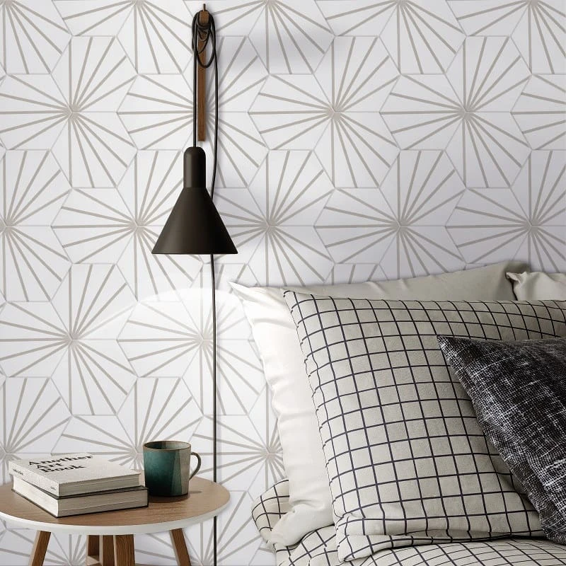 Tomette blanche à rayure grise motif dandelion MERAKI LINE GRIS 19.8×22.8 cm – 0.84m²