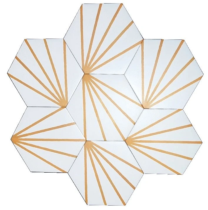 Tomette blanche à rayure orange motif dandelion MERAKI LINE MOSTAZA 19.8×22.8 cm – 0.84m²
