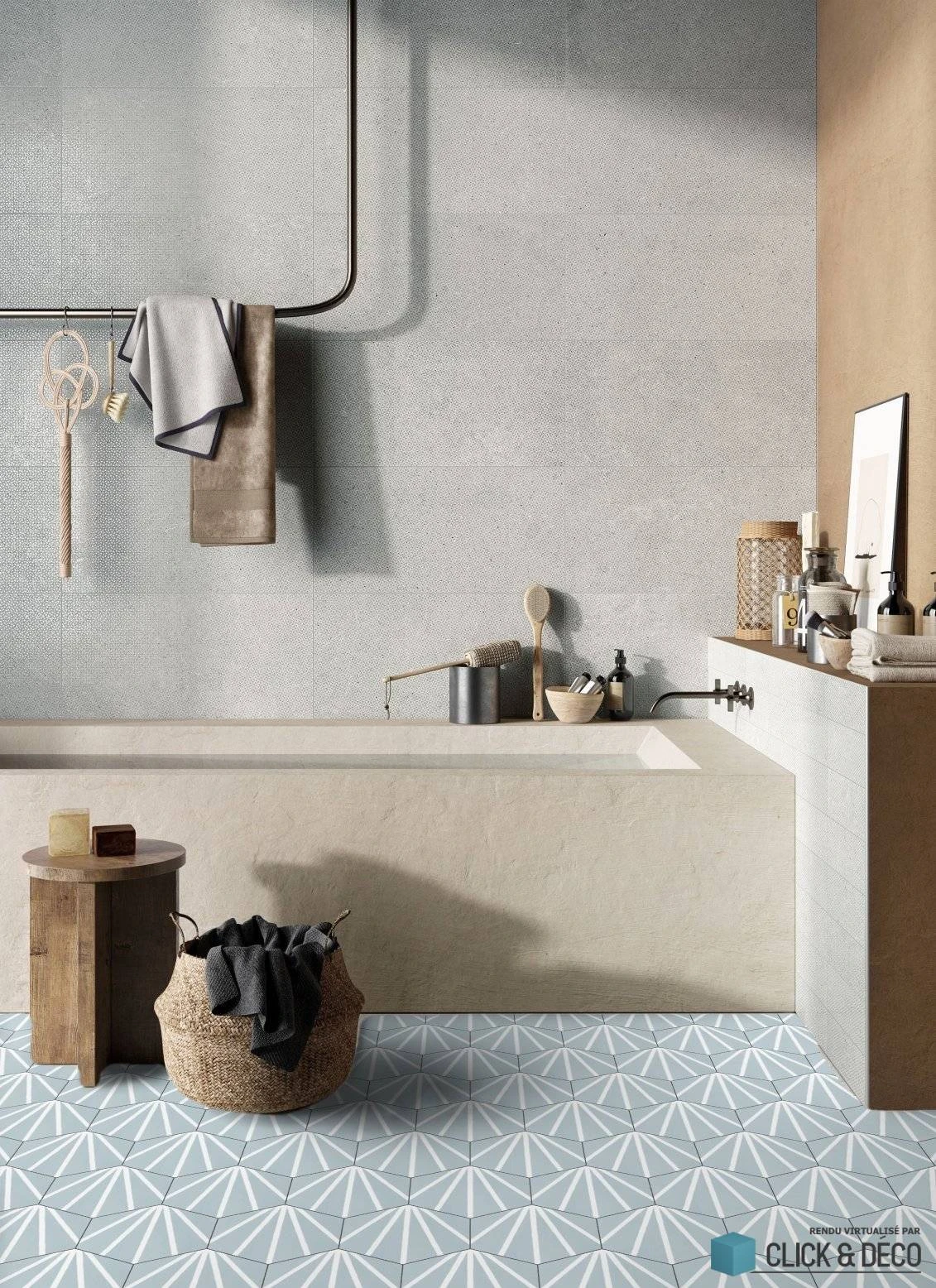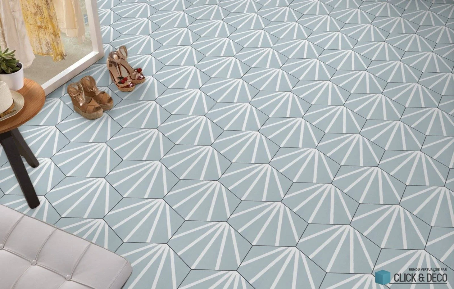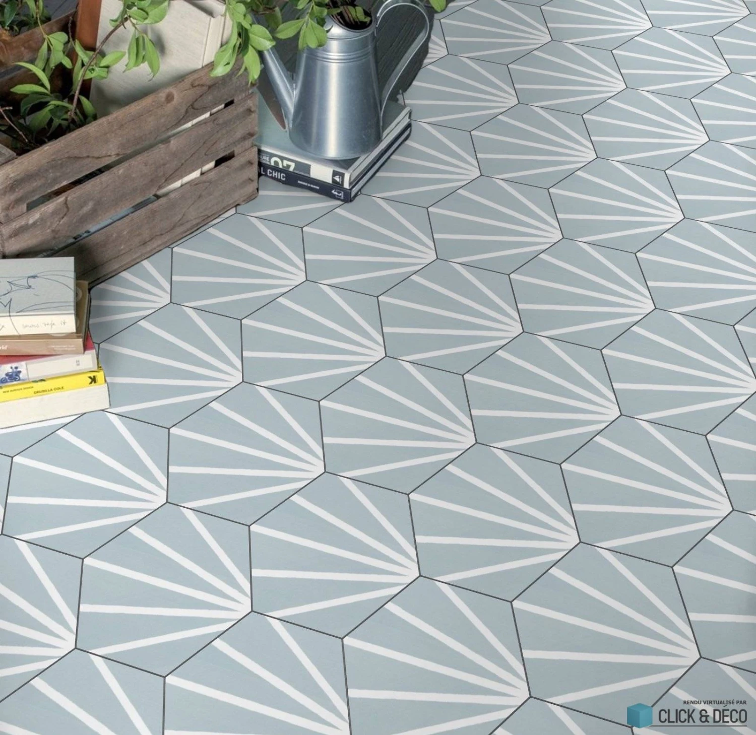 Tomette bleu grismotif dandelion MERAKI AGUAMARINA 19.8×22.8 cm – 0.84m²