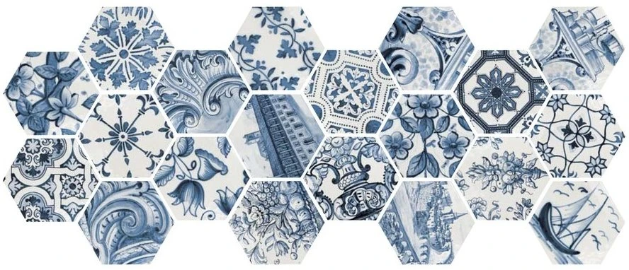 Tomette patchwork bleu Lisboa sol ou mur 17.6×20.1 cm – 0.71m²